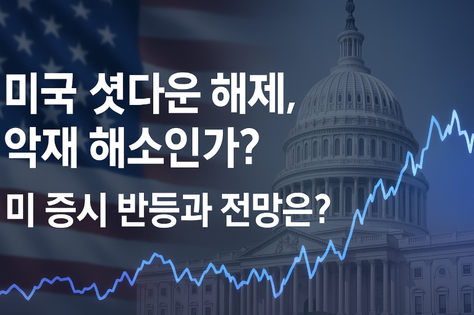 미국 증시 반등의 배경과 향후 시장 관전 포인트 1️⃣ 셧다운, 40일 만에 해결 조짐이 보이다 2025년 10월부터 이어진 미국의 연방정부 셧다운은 이미 40일 이상 지속된 ‘역대 최장’ 기록으로 평가되고 있습니다.의회 예산안 합의가 지연되면서 정부 기관의 일부 기능이 중단되고, 경제지표 공백까지 발생한 상태였습니다. 그런데 최근 며칠 사이 상·하원이 단기 예산안(Continuing Resolution, CR)에 합의할 가능성이 급부상했습니다.공화당·민주당 양측에서 … 더 읽기